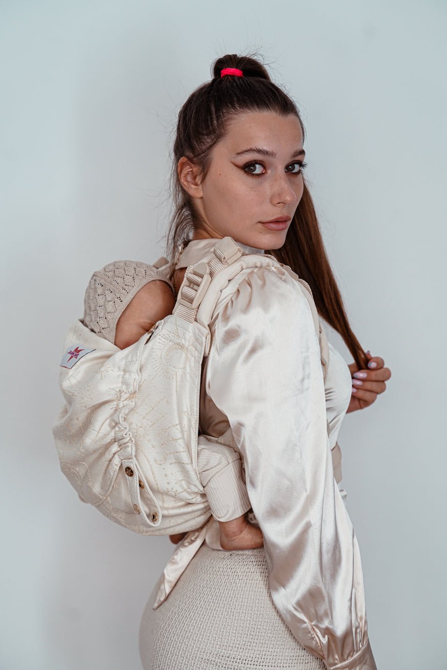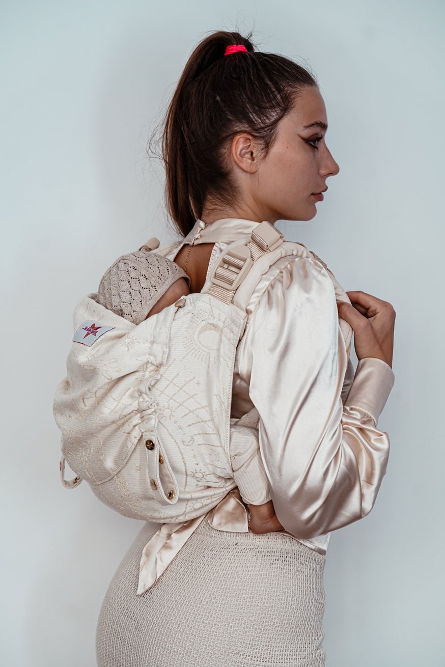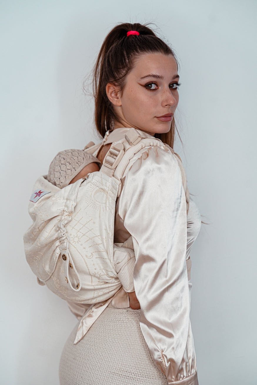 Das absolute Tragetuch-Gefühl, nur als Babytrage. Mit anschmiegsamen Tragetuch Schulterträgern, sitzt diese Babytrage immer perfekt auf dich abgestimmt!
