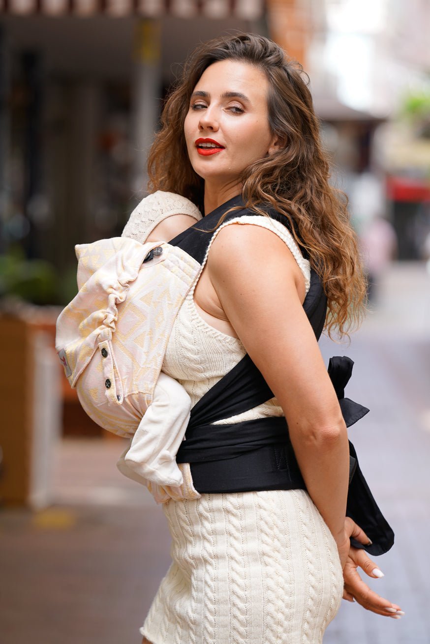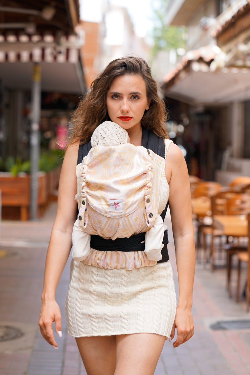 Das absolute Tragetuch-Gefühl, nur als Babytrage. Mit anschmiegsamen Tragetuch Schulterträgern, sitzt diese Babytrage immer perfekt auf dich abgestimmt!