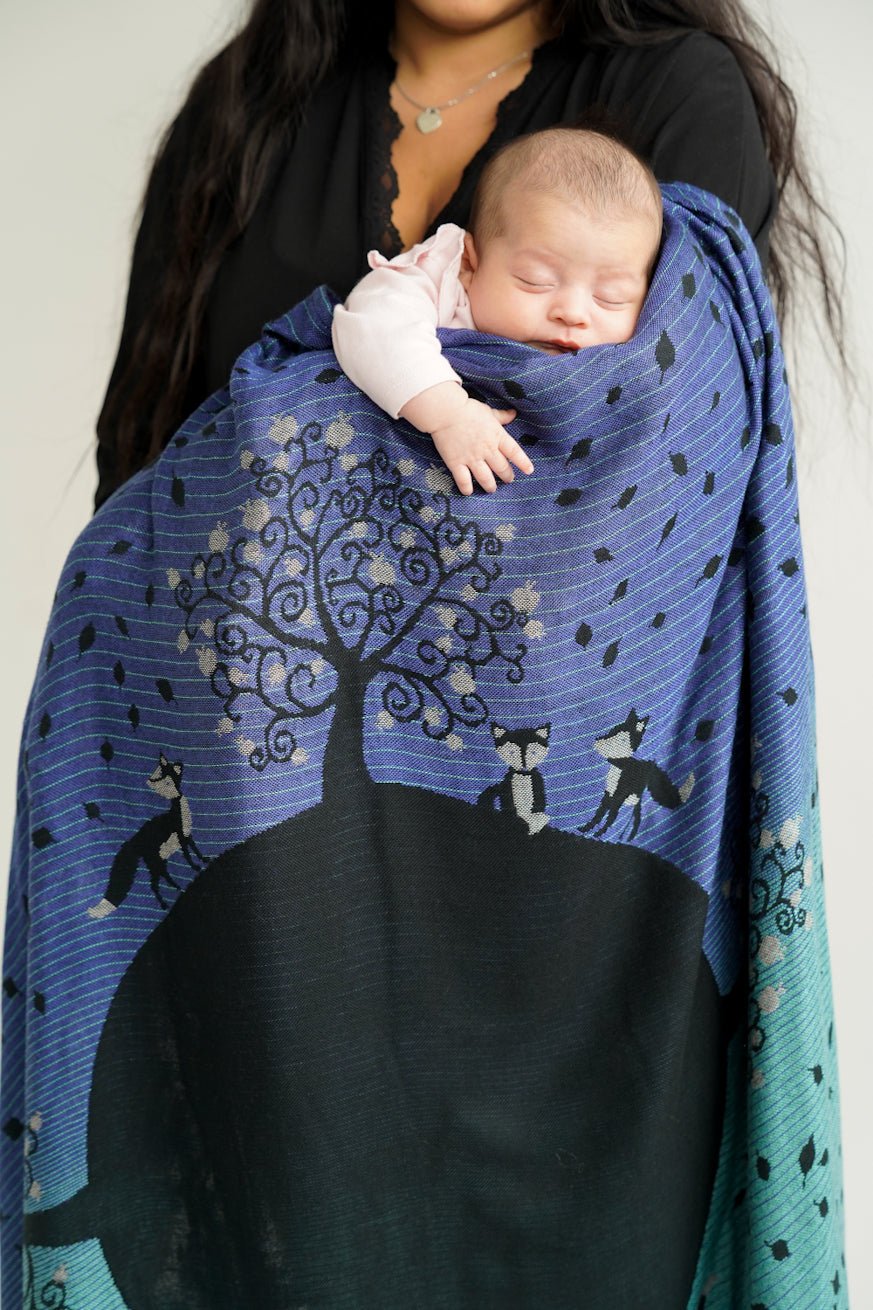 Mit dieser Edlen Trage ist man der Hingucker für alle. Auf der Kokadi Bilder sieht die Trage schon sehr schön aus . In Real hat sie mich dann komplett überzeugt . Trotzdem des glitzer Anteils ist sie kuckelweich und trägt sich sehr bequem.